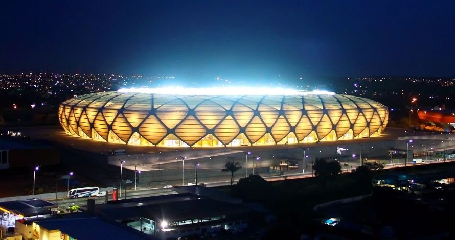 «Соккер Сити Стадиум» — сердце футбола ЮАР. Архитекторов вдохновила африканская керамика, а именно калабас — глиняный горшочек для питья мате. Поэтому у арены такая форма, а фасад украшен рыжей мозаикой.