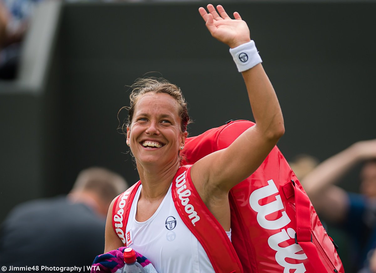 Три стартовых круга чешка прошла без проблем: Леся Цуренко – 6:3, 6:2, Лаура Зигемунд – 6:3, 7:5 и Кики Бертенс – 7:5, 6:1. В четвертом раунде Стрыцовой пришлось помучиться с Элисе Мертенс, но и ее она выбила из турнирной сетки. В 1/4 финала не справилась со Стрыцовой и Йоханна Конта – 7:6, 6:1. Барбора не без везения вытащила первый сет на тай-брейке, а во второй партии просто уничтожила хозяйку корта.